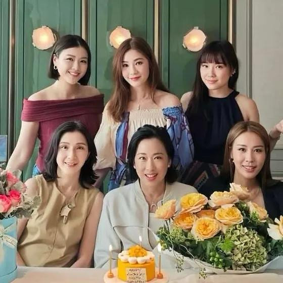 今年有5位成员一起为朱玲玲庆生,而且都是往届港姐,后排三位分别是2006年港姐冠军陈茵媺,1997年冠军翁嘉穗,2009年冠军刘倩婷。而跟朱玲玲坐在一起,左边的是1985年季军王爱伦,右边的是2003年冠军曹敏莉。