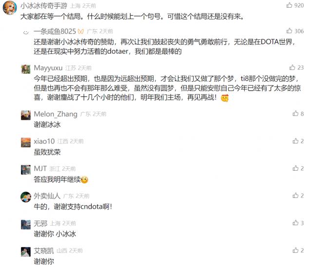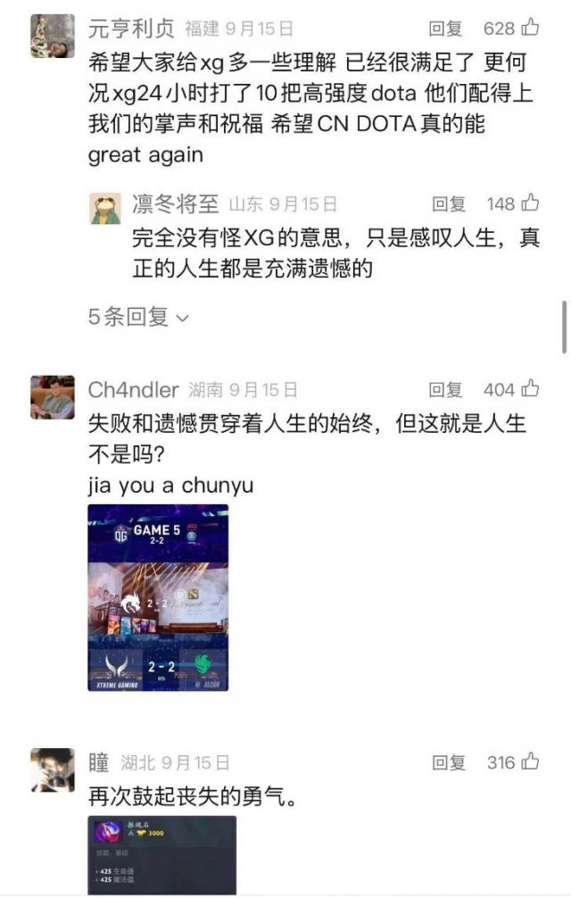 除了难过,更多的却是鼓励与共情。大家不再急于甩锅,很多人也不再执着于"为什么又是 2:3 ",而是学会了相互安慰、彼此打气。这样的氛围,多少让人有些意外,这不像 cndota 的环境。