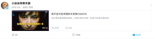 小冰冰赛后隔天发布:"我不会只在夺冠时才支持 cndota "