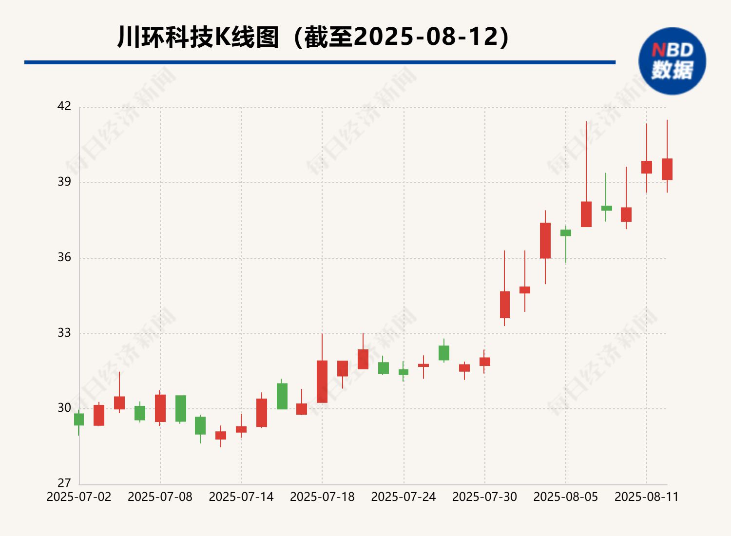 《每日经济新闻》记者注意到,液冷是近期a股市场的热点板块,包括英维克、淳中科技、飞荣达等个股在内的概念股近期都录得大幅上涨。7月31日至8月12日收盘,川环科技也在9个交易日收获24.7%的累计涨幅。